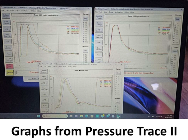 Testing was performed on a Pressure Trace II System. (See graphs below - Spin Bullets are designated HPSB.)