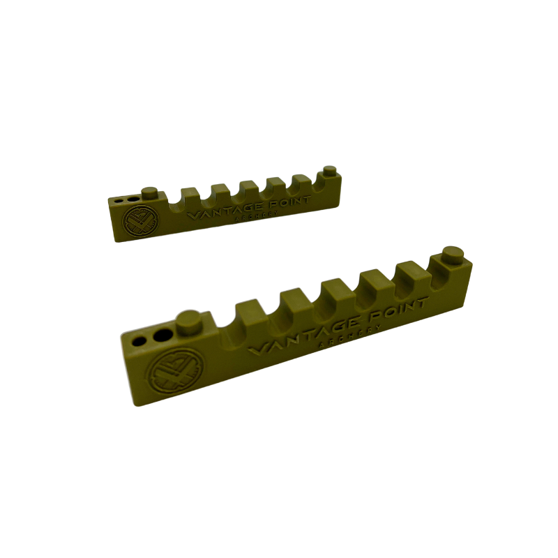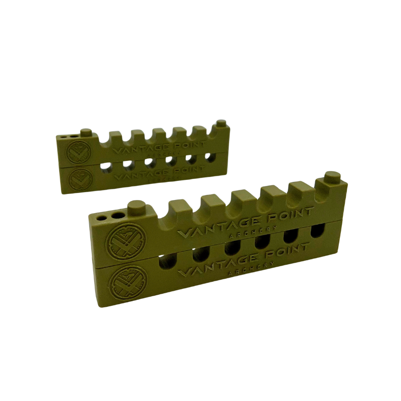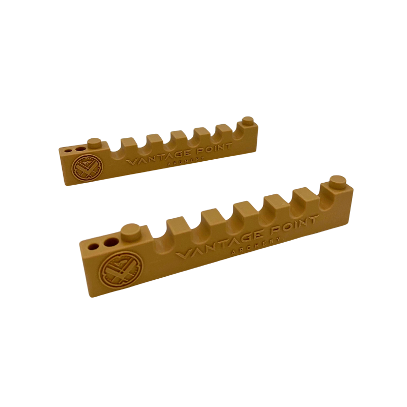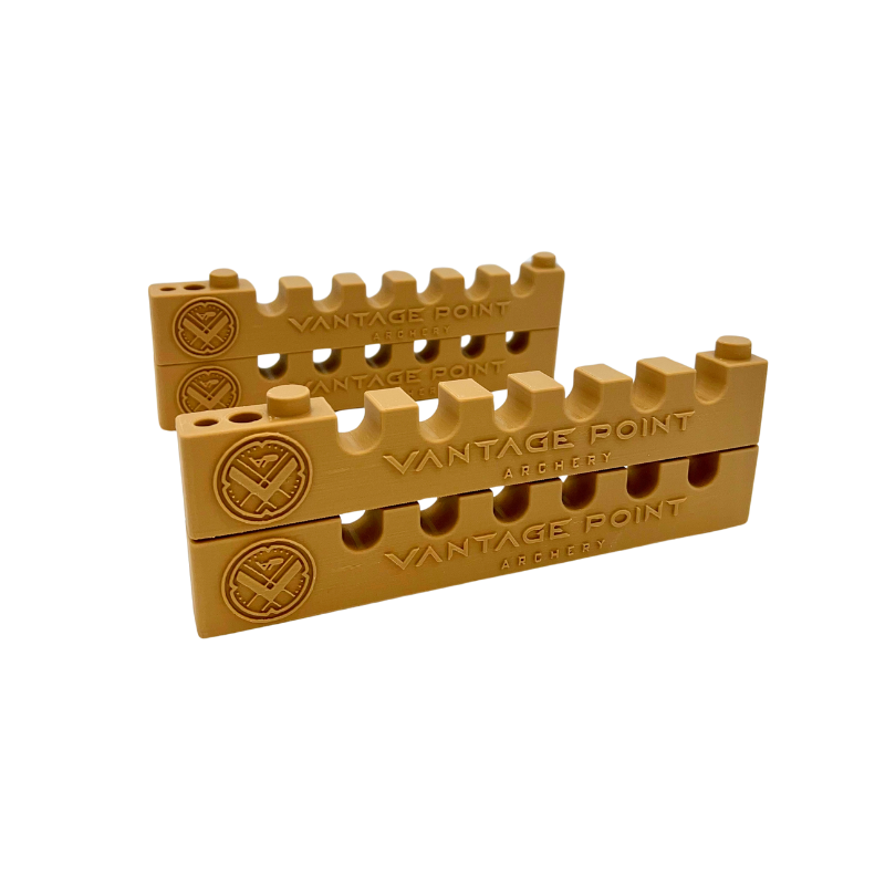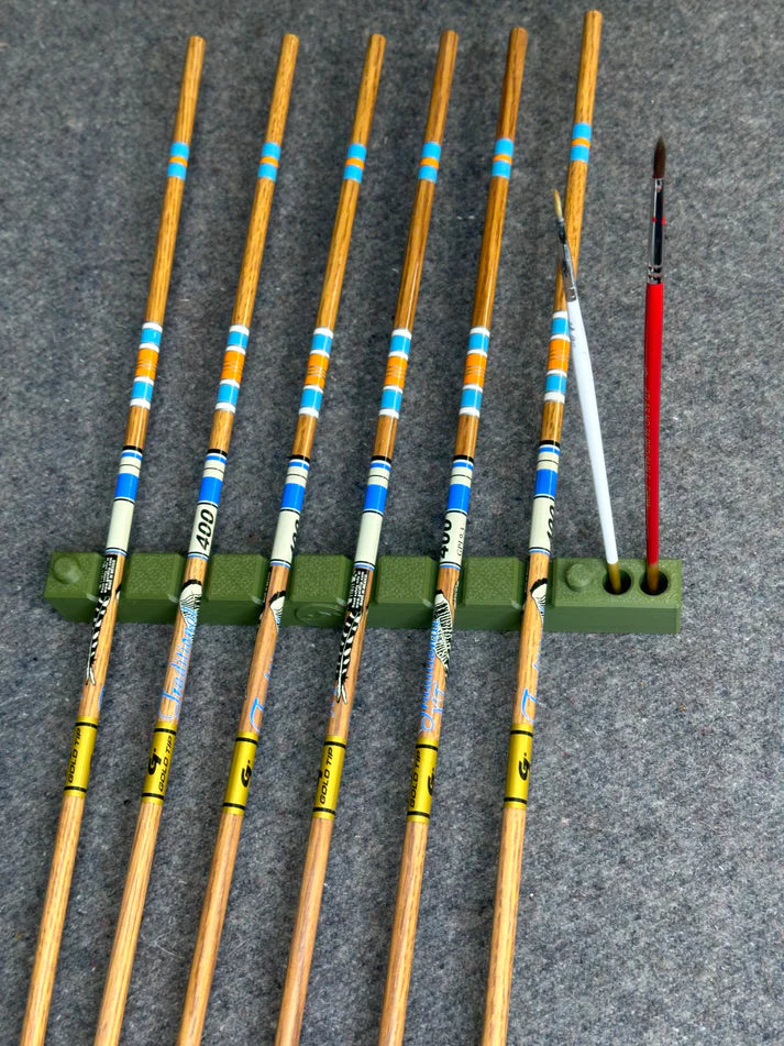 Crafted with durable polymer, each rest securely holds up to 6 arrows, providing a stable platform for cresting. With integrated brush holder pockets and interlocking stacking capabilities, this pair of rests ensures convenience and organization during arrow customization.